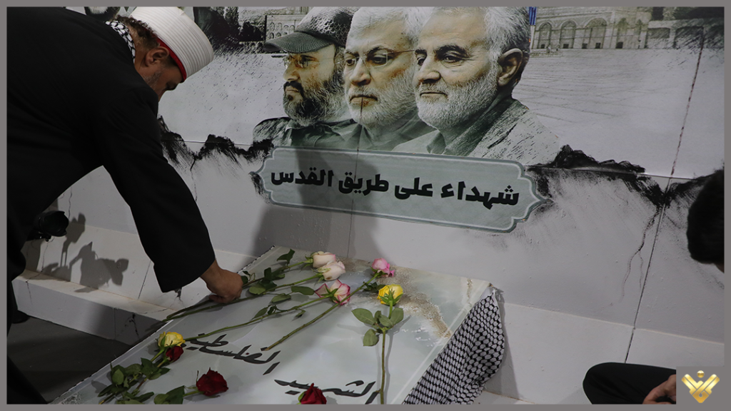 Photo of martyrs: Hezbollah’s Imad Mughniyeh, IRGC’s Qassem Suleimani and Hashd Shabi’s Abu Mahdi Al-Muhandis during Arbaeen commemoration in 2023.