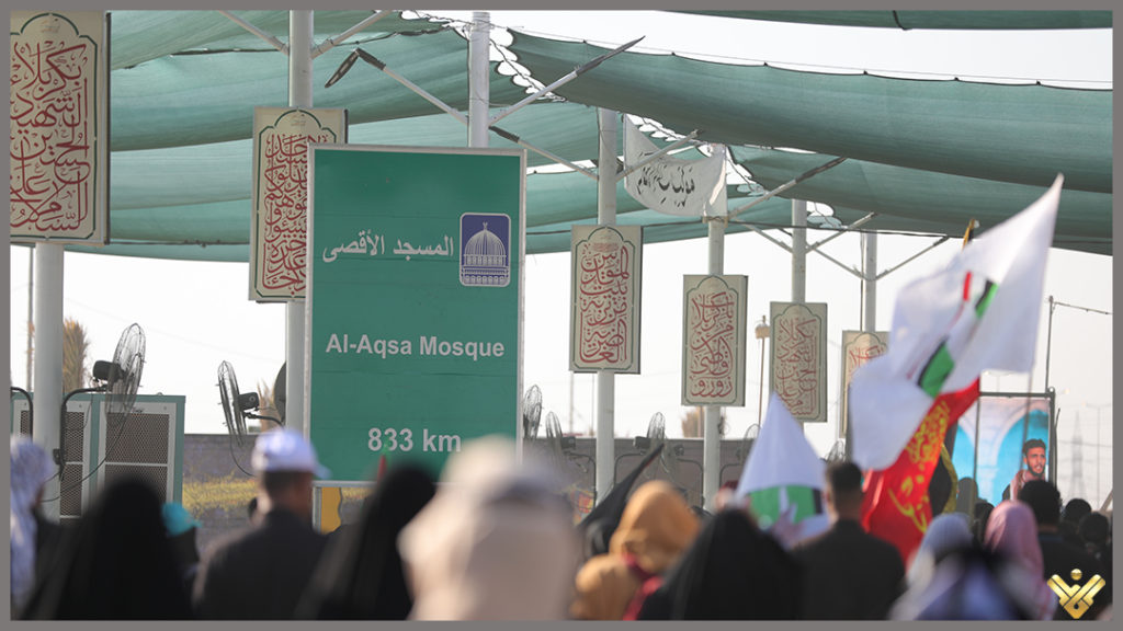 Palestine was highly present during this year’s Arbaeen season. Al-Manar exclusive photos show pilgrims on the road from Najaf to Karbala raising the Palestinian flags with photos of Palestinian martyrs being seen at Al-Aqsa Call Convoy in the holy cities.