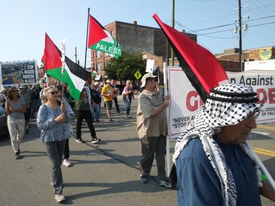 To highlight the situation of the Palestinians, the marchers banged empty pots with spoons illustrating the abundance which exists among some in the U.S. contrasted by starvation in Gaza at the aegis of the rich. It is the ruling class in the U.S. which prevents any change in policy towards the State of Israel and the Palestinians suffering from national oppression and settler-colonialism.