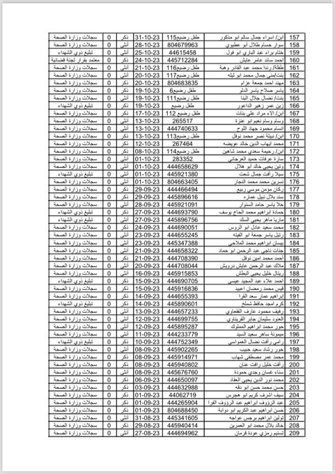 The Ministry of Health in Gaza has just published a 649-page document with the the name, age, gender, ID number of every Palestinian killed in Gaza from October 7 to August 31 that it has info for (over 34k out of 40k). The 1st 14 pages the age is listed as 0 (under 1 year old)