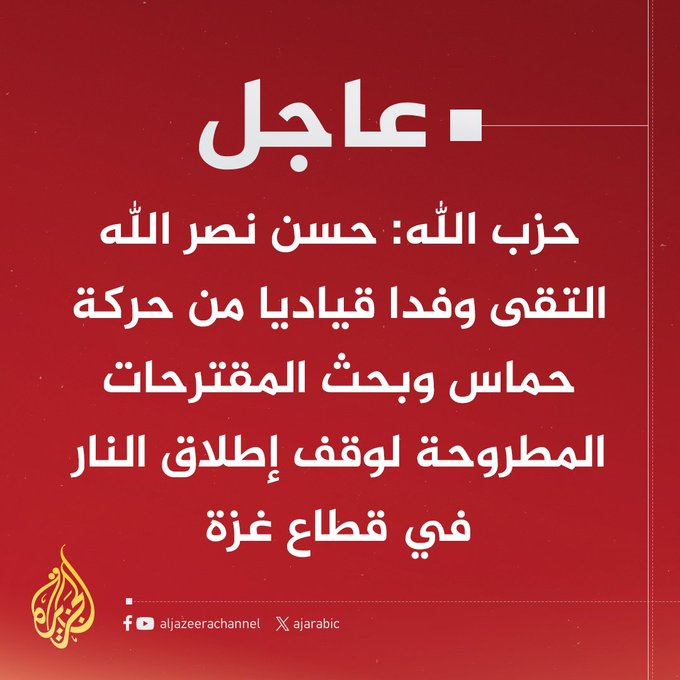 #عاجل | حزب الله: حسن نصر الله التقى وفدا قياديا من حركة حماس وبحث المقترحات المطروحة لوقف إطلاق النار في قطاع غزة #حرب_غزة