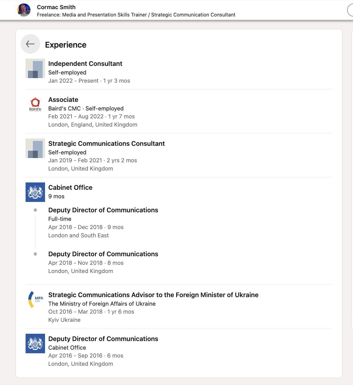 Cormac Smith's “Experience” | LinkedIn