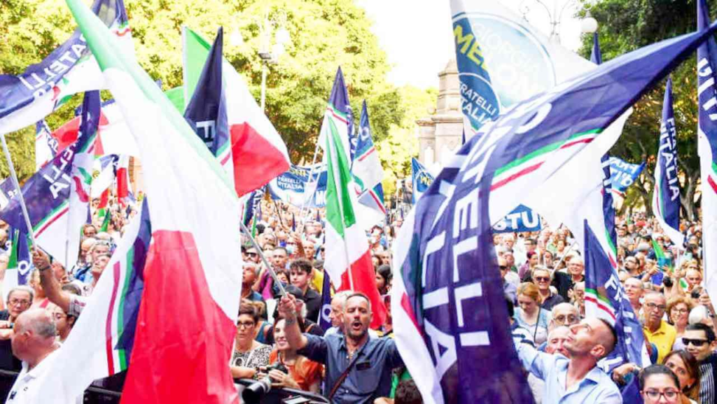 One of the typical themes of Fratelli D’Italia is the destruction of our identity by speculators, by online social networks, by the ‘International Republic Of Money’ as they call it, to create a formless mass of atomised citizens who have no loyalty or roots.