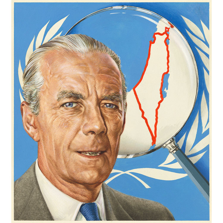 He took that diplomatic experience into the conflict over the creation of the state of Israel on the land of Palestine in the late 1940s, conducting mediation efforts and helping to negotiate an initial truce in the conflict before that broke down shortly after.