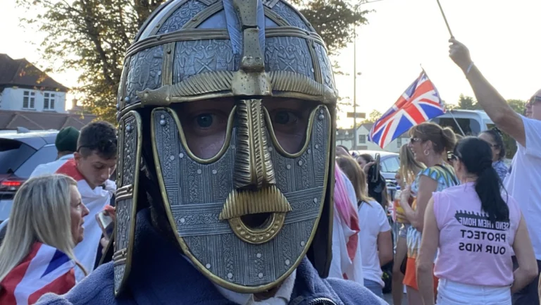 The controversy around asylum hotels has fueled a nationwide trend, backed largely by far-right groups, who have taken to the streets carrying the English flag — the red cross of St. George on a white background — as a symbol of supposed British “purity.”